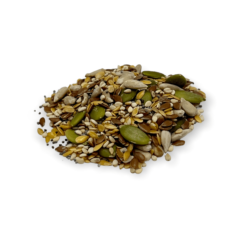 Mezcla equilibrada de semillas de lino, chía, calabaza, girasol, sésamo y amapola. Perfecta para añadir un boost de nutrientes a tus ensaladas, yogures, batidos o panes, aportando una variedad de texturas y sabores a tus comidas.